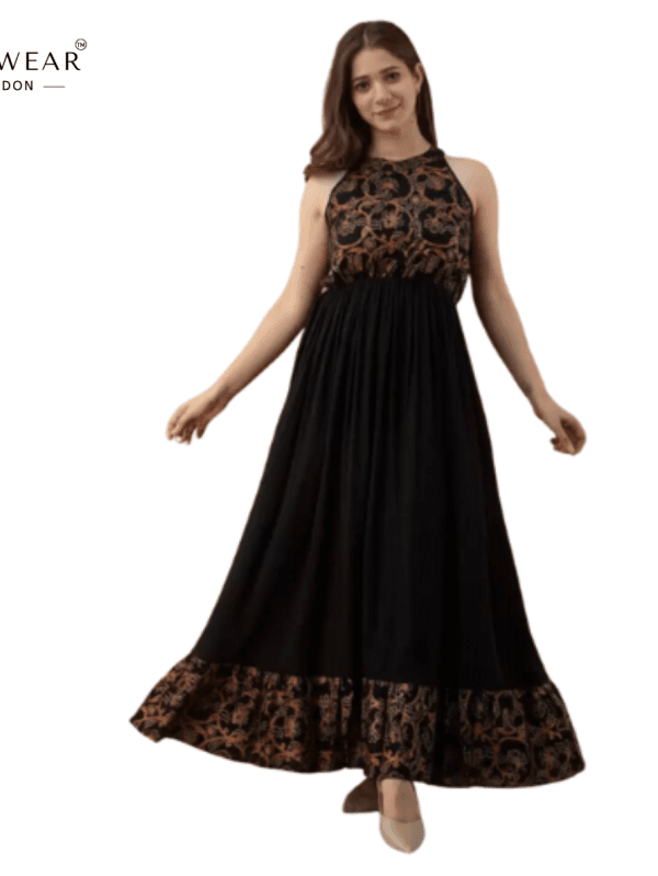 Featuring Women's A-Line black dress, this brings a touch of nature-inspired beauty to your wardrobe.Crafted from high-quality cotton, this dress offers comfort and breathability. Cotton’s durability makes this dress a practical choice for everyday wear.The fabric's breathable nature helps keep you cool even in hot weather conditions.