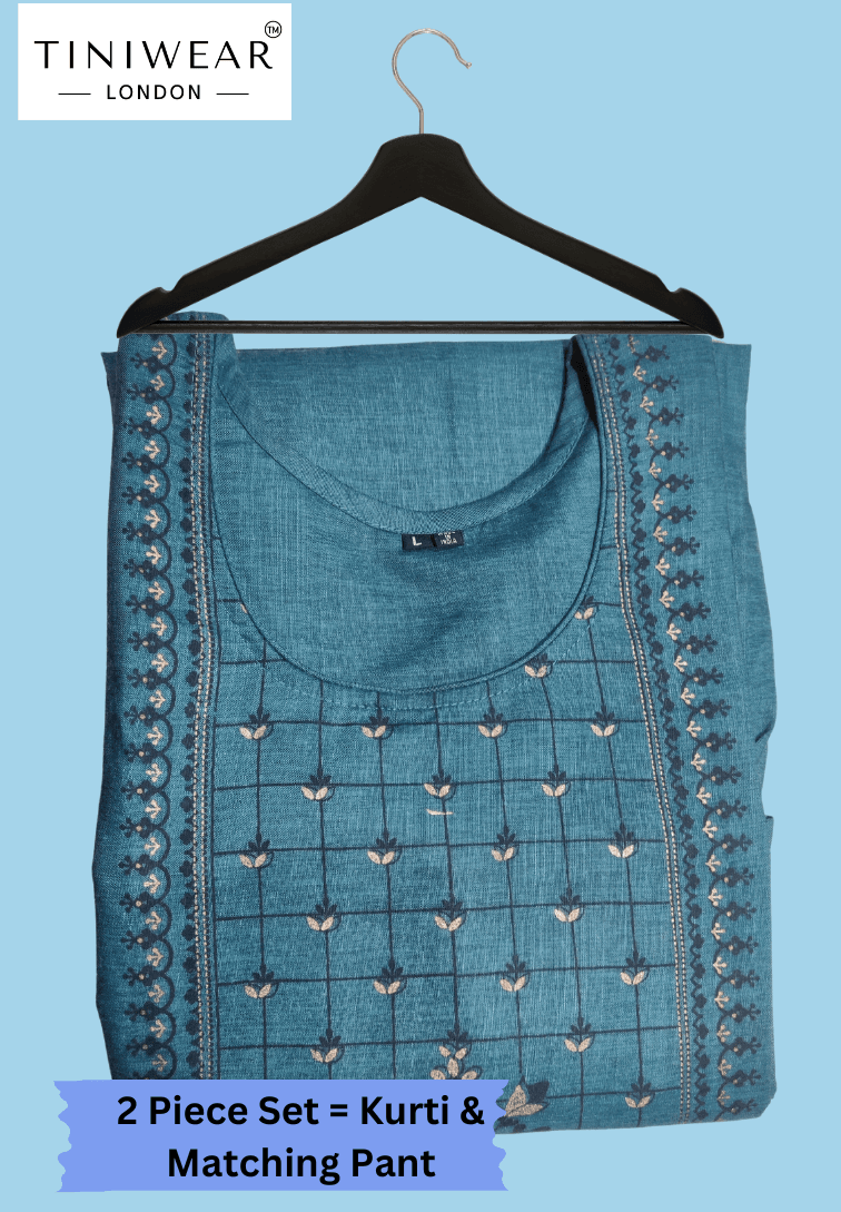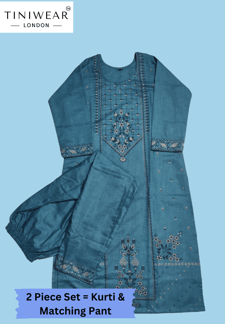 - Set Includes: 2-piece outfit – one embroidered kurti and one matching pant