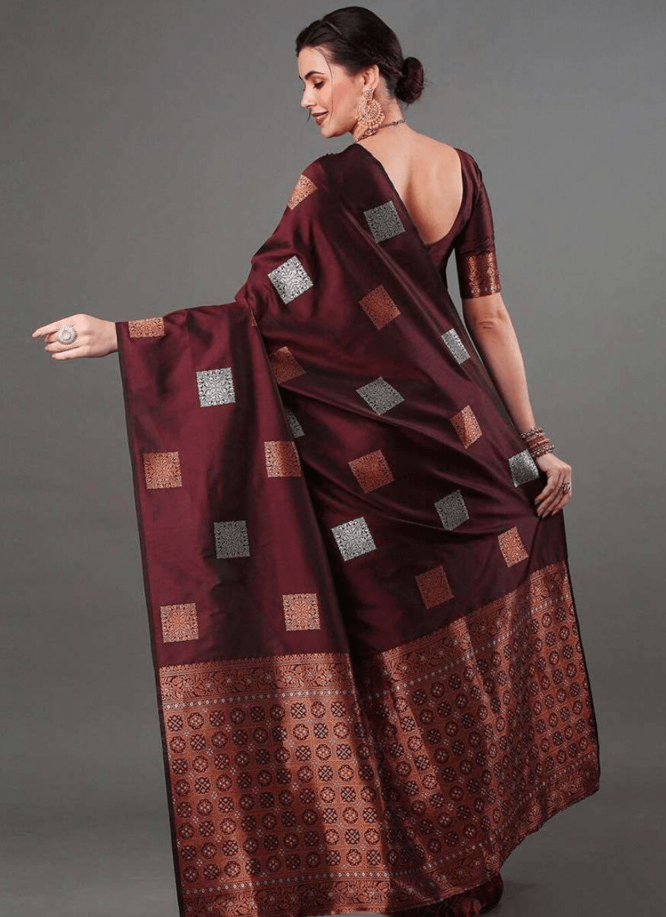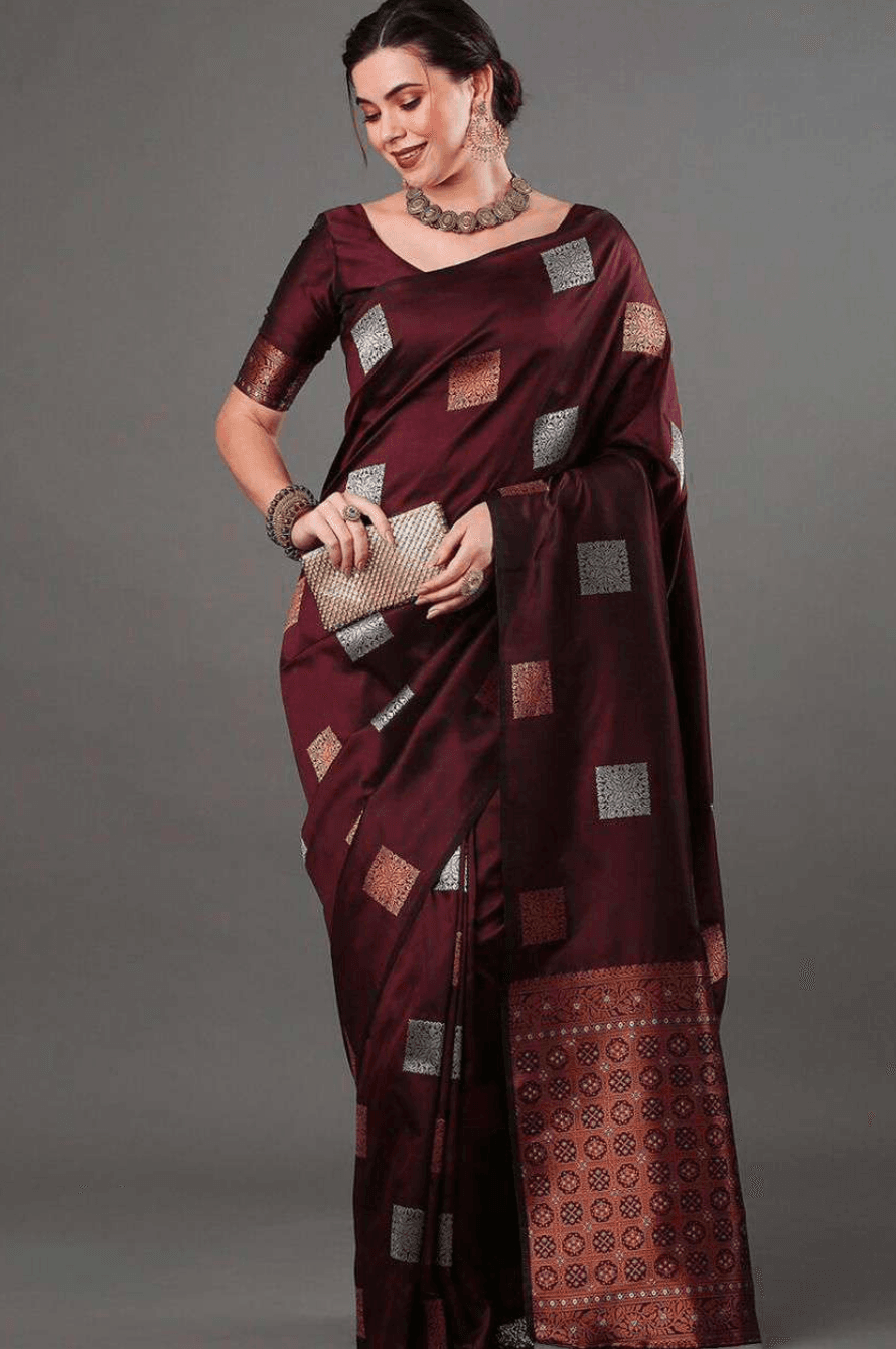 Turn Heads in the Banarasi – Maroon Kanjivaram Silk Saree