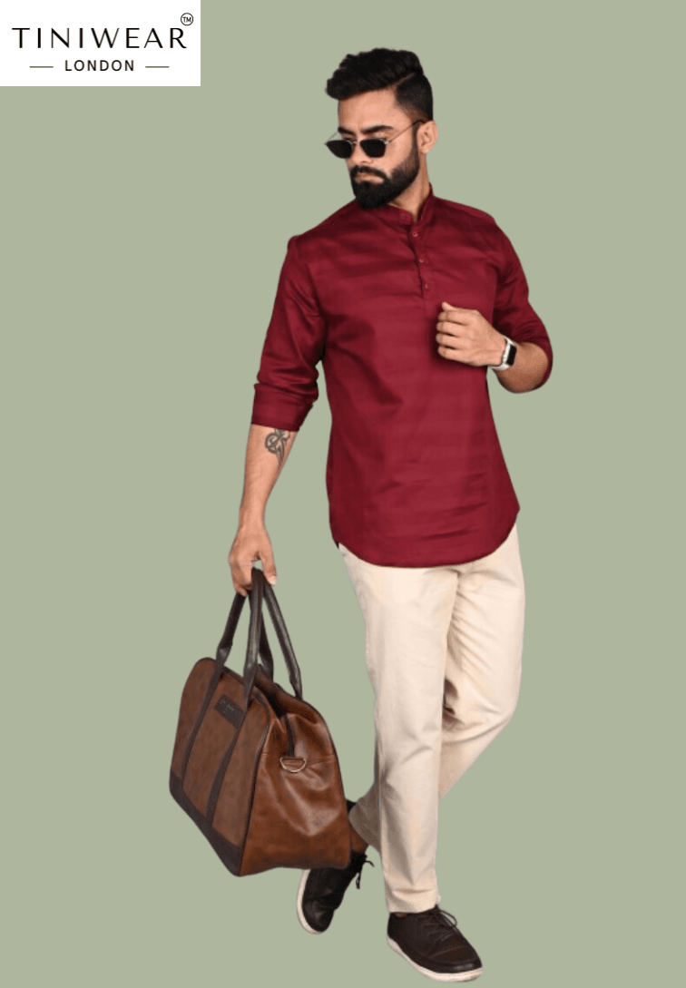 Maroon – Mandarin Collar Kurta: your standout pick for the Best Kurta in Sri Lanka
