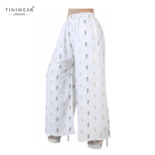 Step up your style game with these Printed Palazzos in Sri Lanka, perfect for women who love combining comfort with trend-forward fashion. Designed for teens, young adults, and Gen Z streetwear fans, these White Printed Palazzos feature a sophisticated golden self-design print that adds a touch of glamour. Ideal for casual outings, beach days, or relaxed city strolls, they are versatile enough to pair with simple tees for daywear or stylish blouses for a chic evening look.