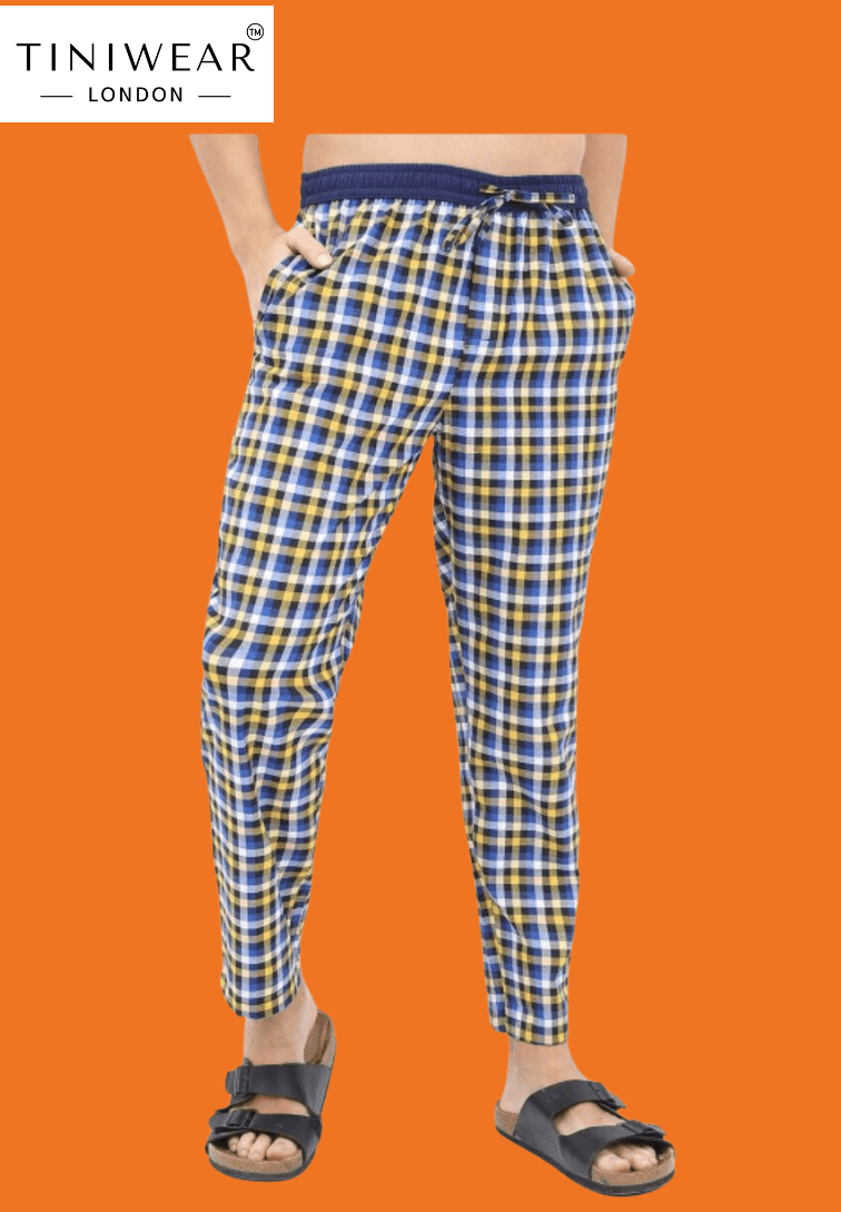 Jogger pant Online Sri Lanka searches just got brighter with the Yellow & Blue Lounge Pants from Tiniwear. Made for teens, young adults, and Gen Z streetwear fans, these checked lounge pants are perfect for lazy Sundays, campus days, sleepovers, road trips, and late-night snack runs. If you love comfy fits that still look aesthetic, this jogger pant Online Sri Lanka style is a must-have in your chill wardrobe.
